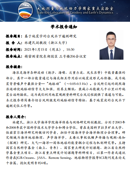 2021年1月15日Ezpay大地测量与地球动力学国家重点实验室学术预告