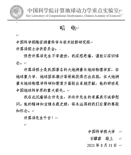 石耀霖|唁电